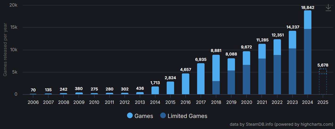 Its why we see so many startups focused on content; why so many pitch decks lead with game concepts rather than business models; why the number of new Steam releases breaks records every year.